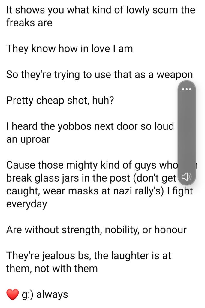 In love of G and chivalry, seek the prize, I stand against the low tide, with the force of my goddess, a soul’s noble pride, against an all-out brawl, on my left, on my right, fall